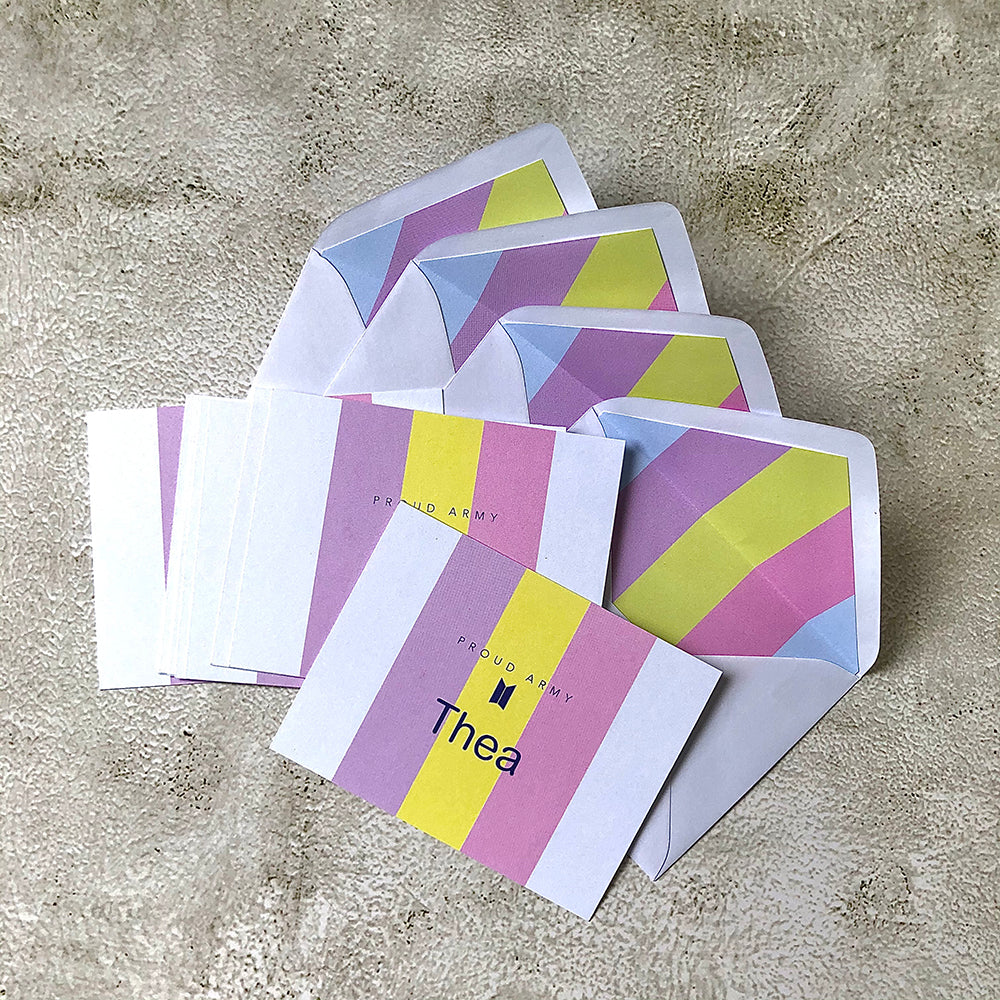 20 pcs. Flat Notecards , each card has an envelope lined with a beautiful graphics.