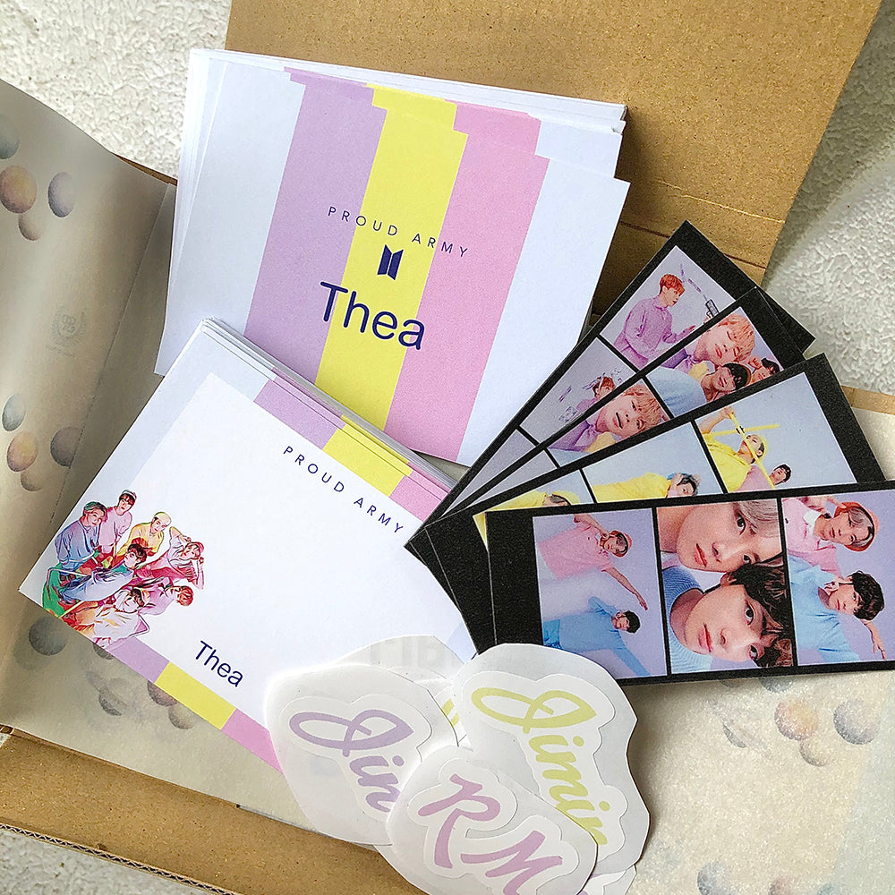 This BTS inspired stationery set includes: