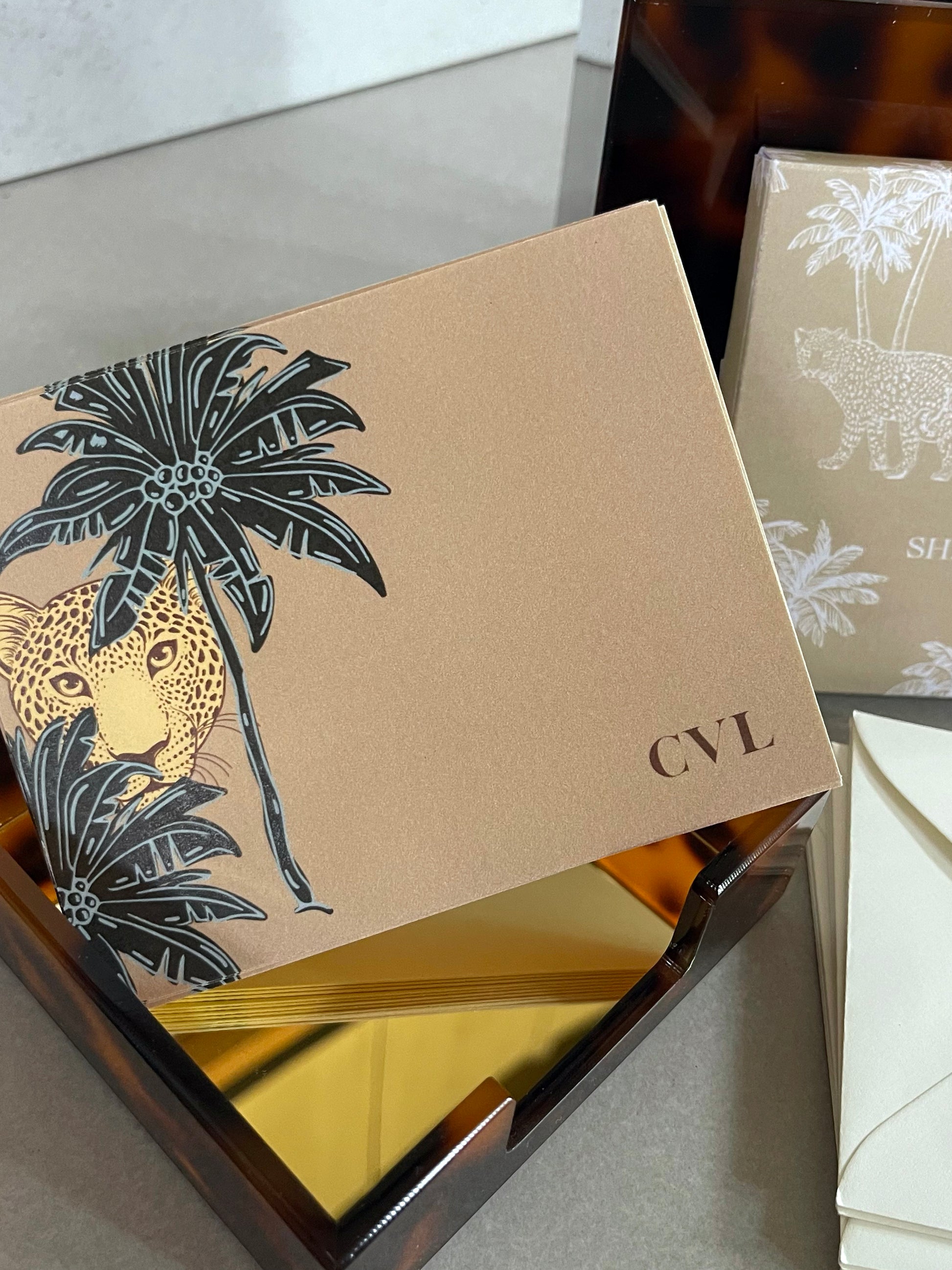 Our boutique stationery line features personalized, limited-edition designs printed on luxurious 100% cotton board, 300gsm cardstock. Each piece offers a refined, textured finish for a unique, high-quality experience.